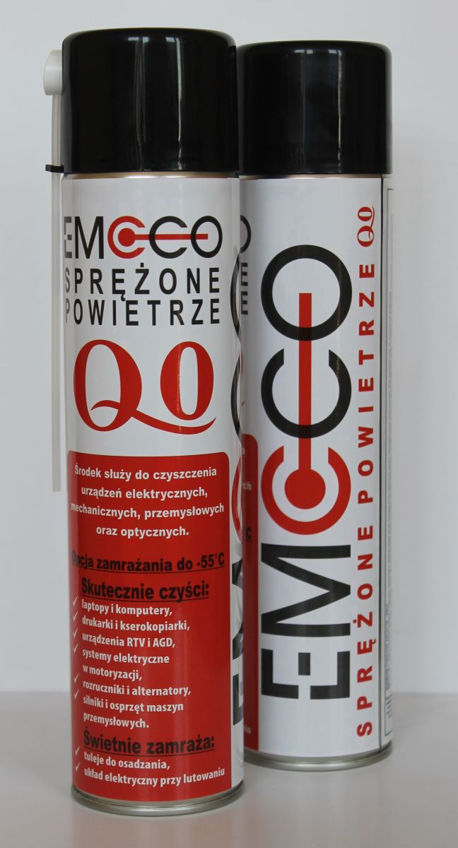 EMCCO Q0 to doskonałej jakości preparat czyszczący i zamrażający. Idealnie nadaje się do usuwania kurzu, zabrudzeń, płynów i wszystkich innych zanieczyszczeń, które przylegają luźno do czyszczonych powierzchni. Nie wchodzi w reakcję z innymi materiałami. Całkowicie czysty, nie pozostawia żadnych plam ani śladów. Pojemnik napełniony jest wysokiej jakości bezwonnym gazem ekologicznym zgodne z normami Unii Europejskiej. Zastosowanie odpowiedniej mieszaniny skroplonych gazów pod wysokim ciśnieniem gwarantuje doskonałe czyszczenie oraz zwiększoną wydajność produktu. Rozpylany gaz natychmiastowo odparowuje zamrażając powierzchnię do -55°C. Można w ten sposób osadzić tuleję (metoda skurczona) oraz zamrażać układy elektroniczne przed ich wylutowaniem.