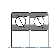 Jest to układ dwóch łożysk kulkowych skośnych pracujących w układzie "O". Pierścienie wewnętrzne jak i zewnętrzne każdego z łożysk są scalone ze sobą i tworzą jednolite pierścienie. Obciążenia osiowe w tych łożyskach są przenoszone w obu kierunkach. Łożyska te są stosowane jako łożyska ustalające. Produkowane są z koszami wytłaczanymi z blachy stalowej. |