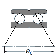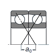 Układ "O" (DB) | W tym układzie mogą być przenoszone obciążenia promieniowe i osiowe w obu kierunkach. Ponieważ odległość pomiędzy czynnymi środkami działania nacisków a0 jest duża, układ ten jest odpowiedni do przenoszenia momentów działających w płaszczyźnie przechodzącej przez oś łożyska. |